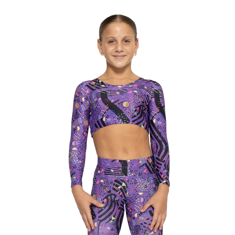 Αθλητικό μακρυμάνικο κροπ τοπ για παιδιά με διασκεδαστικό τύπωμα μσε όλη την επιφάνεια.
