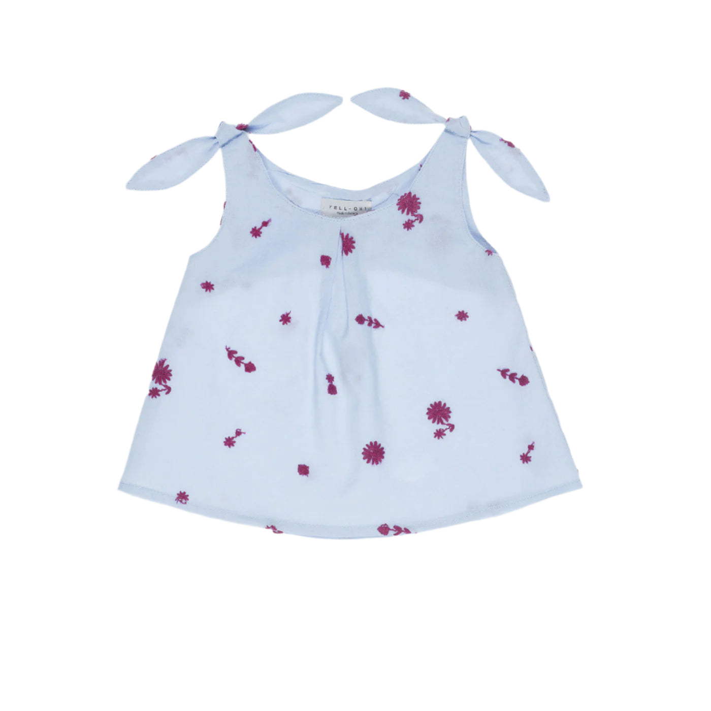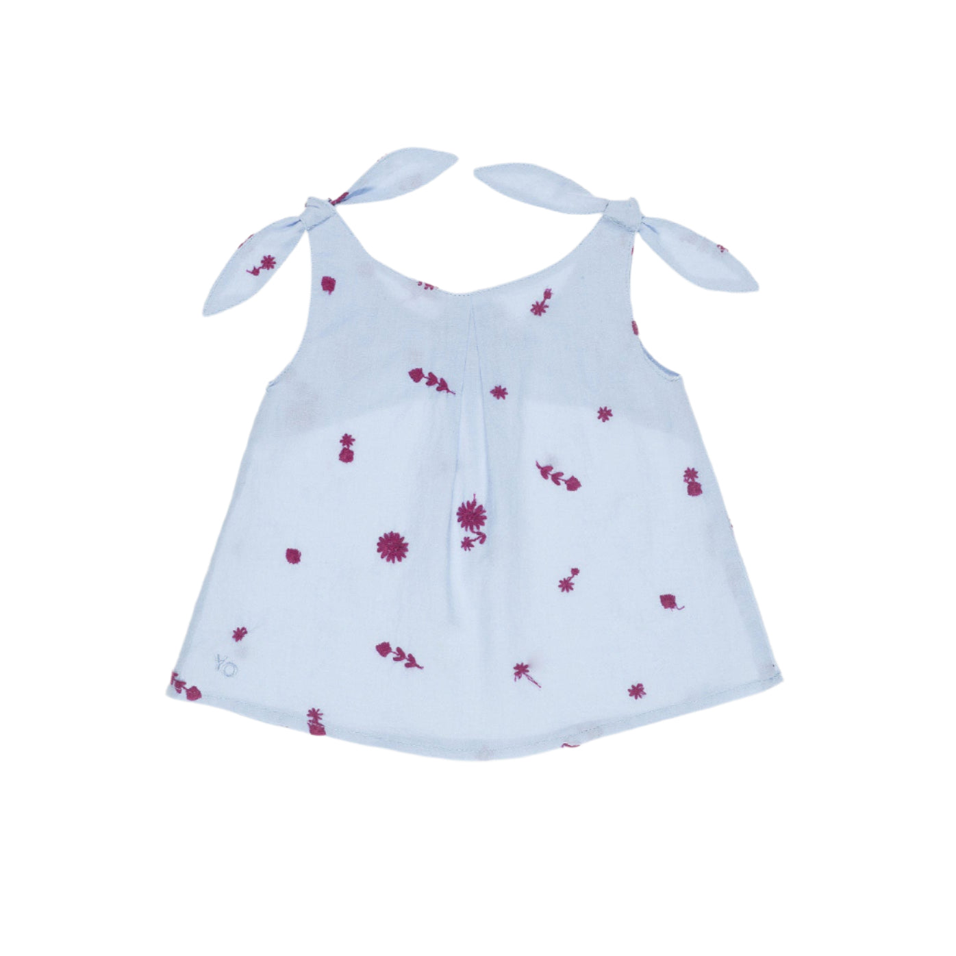 Αμάνικη μπλούζα για μωρά με κεντήματα σε όλη την επιφάνεια και δέσιμο στους ώμους.