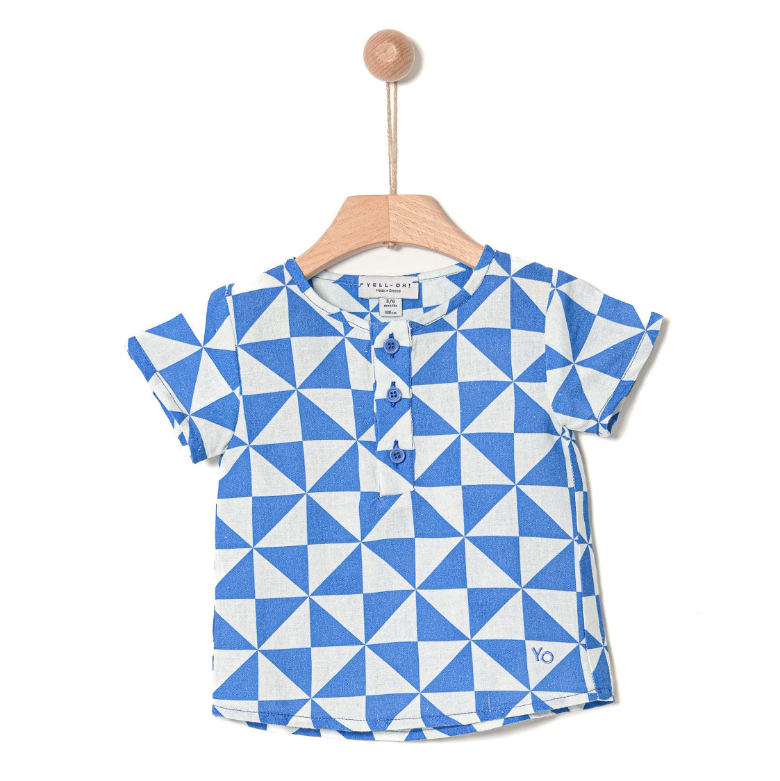 Λινή μπλούζα για μωρά με τύπωμα σε όλη την επιφάνειά της και κουμπάκια στο μπροστινό μέρος.