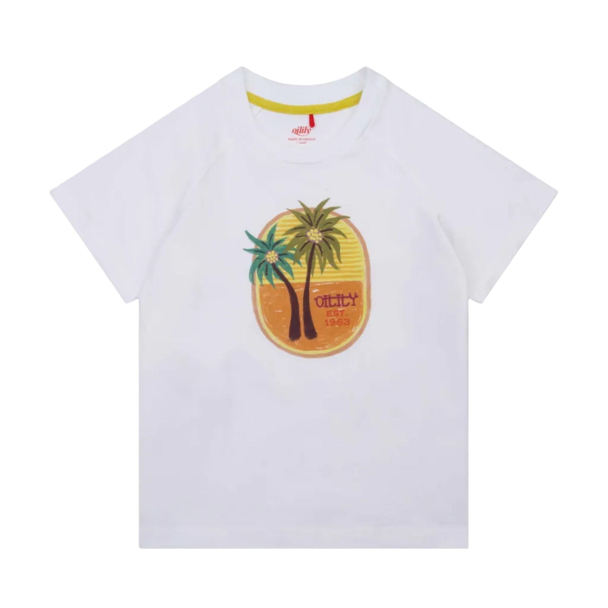 Κοντομάνικη μπλούζα για παιδιά με διασκεδαστικό σχέδιο στο μπροστινό μέρος και στρογγυλή λαιμόκοψη.