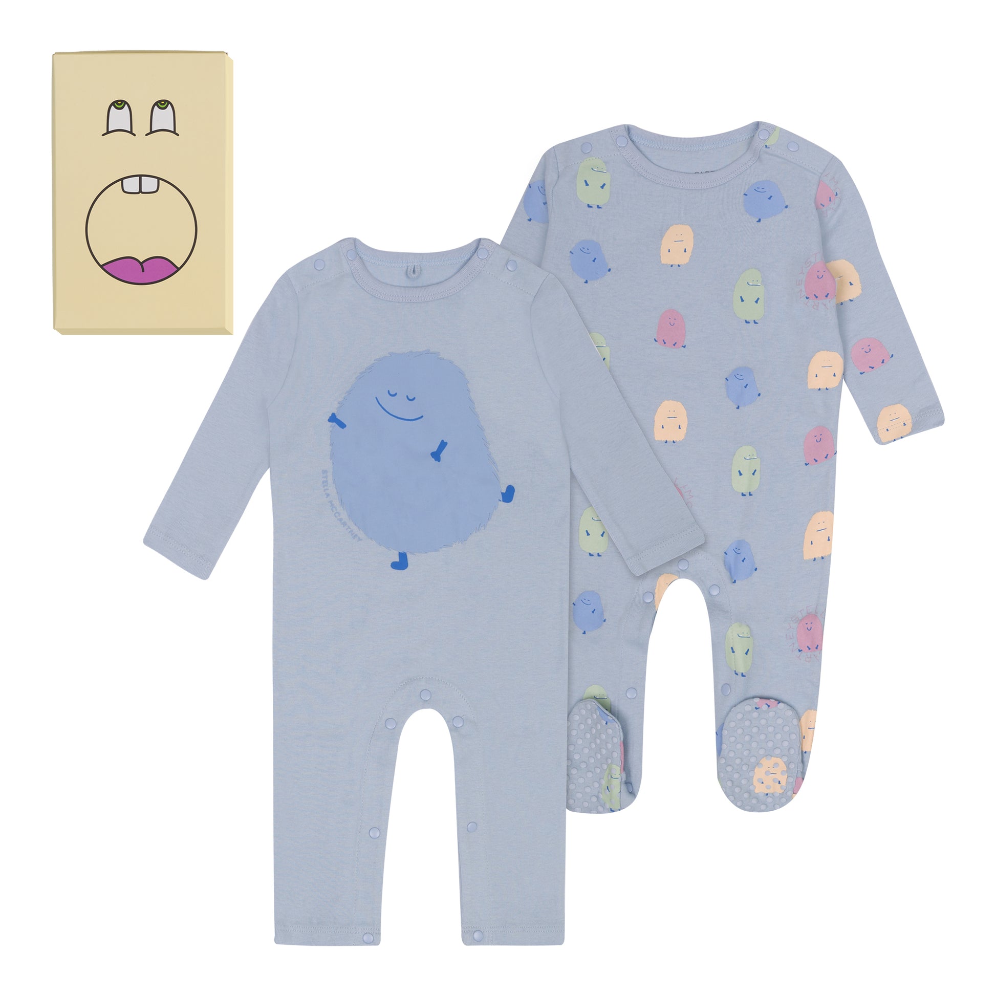 Σετ που αποτελείται από 2 μακρυμάνικα φορμάκια με διασκεδαστικά σχέδια και κλείσιμο με κουμπιά στον ώμο και ανάμεσα στα πόδια. Ιδανικό δώρο για νεογέννητο!