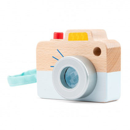 1,2,3 click! Με αυτήν την ξύλινη κάμερα παιχνιδιού από τη New Classic Toys, το μικρό σας μπορεί να τραβήξει όμορφες φωτογραφίες όπως εσείς. Κοιτάξτε μέσα από το παράθυρο, εστιάστε την κάμερα περιστρέφοντας τον φακό και πατήστε το κουμπί!