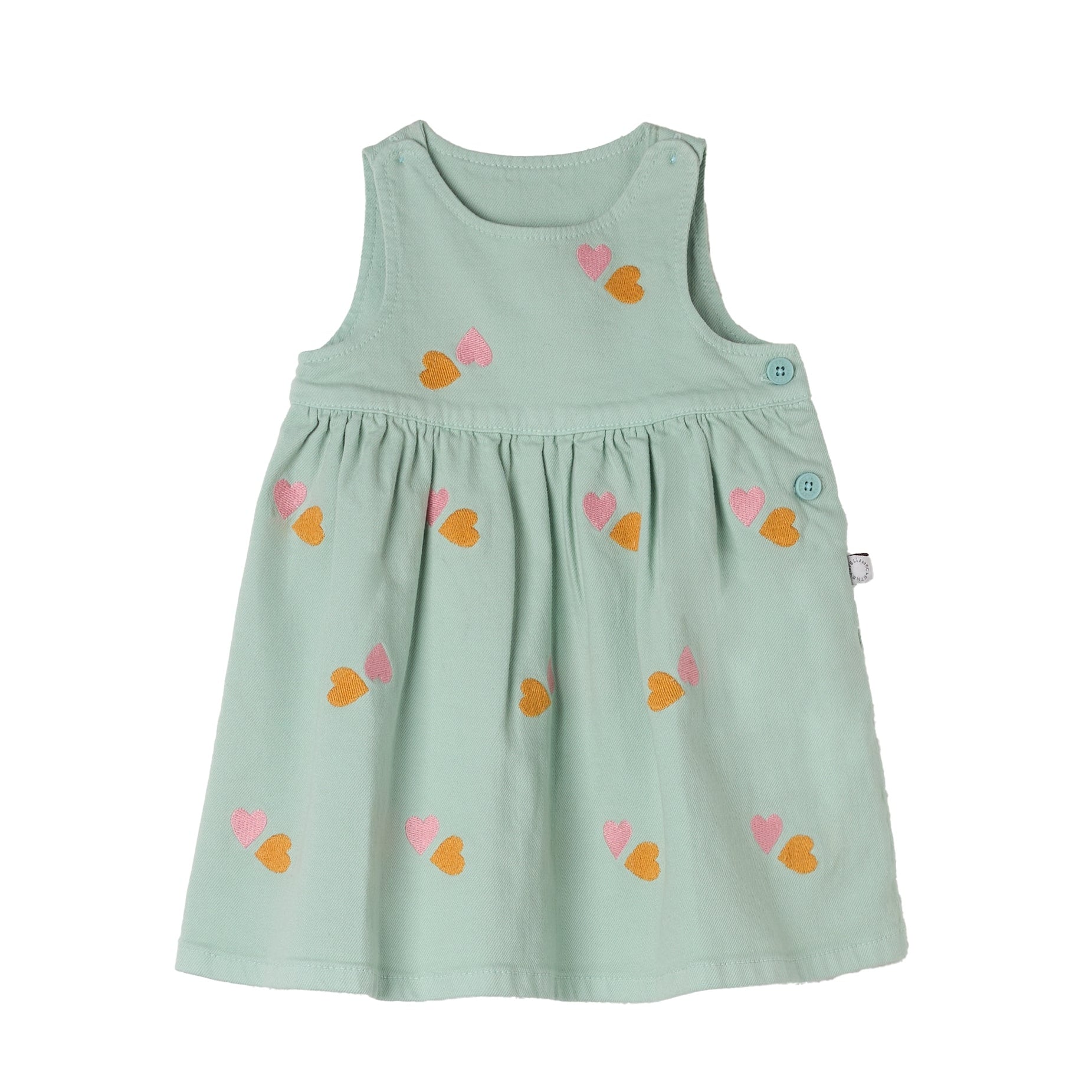 Αμάνικο φόρεμα για μωρά με κεντημένες καρδιές σε όλη την επιφάνεια και κλείσιμο με κουμπιά στο πλάι.