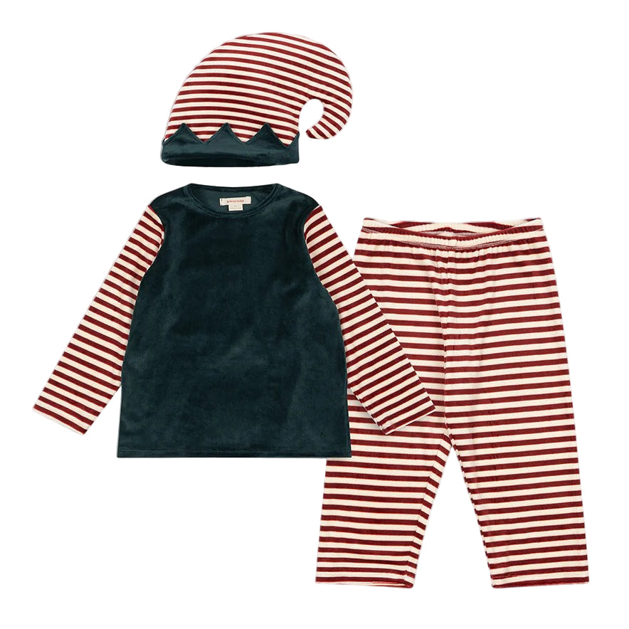 Βελούδινη στολή ξωτικού για μωρά που αποτελείται από μπλούζα, παντελόνι και σκουφί.