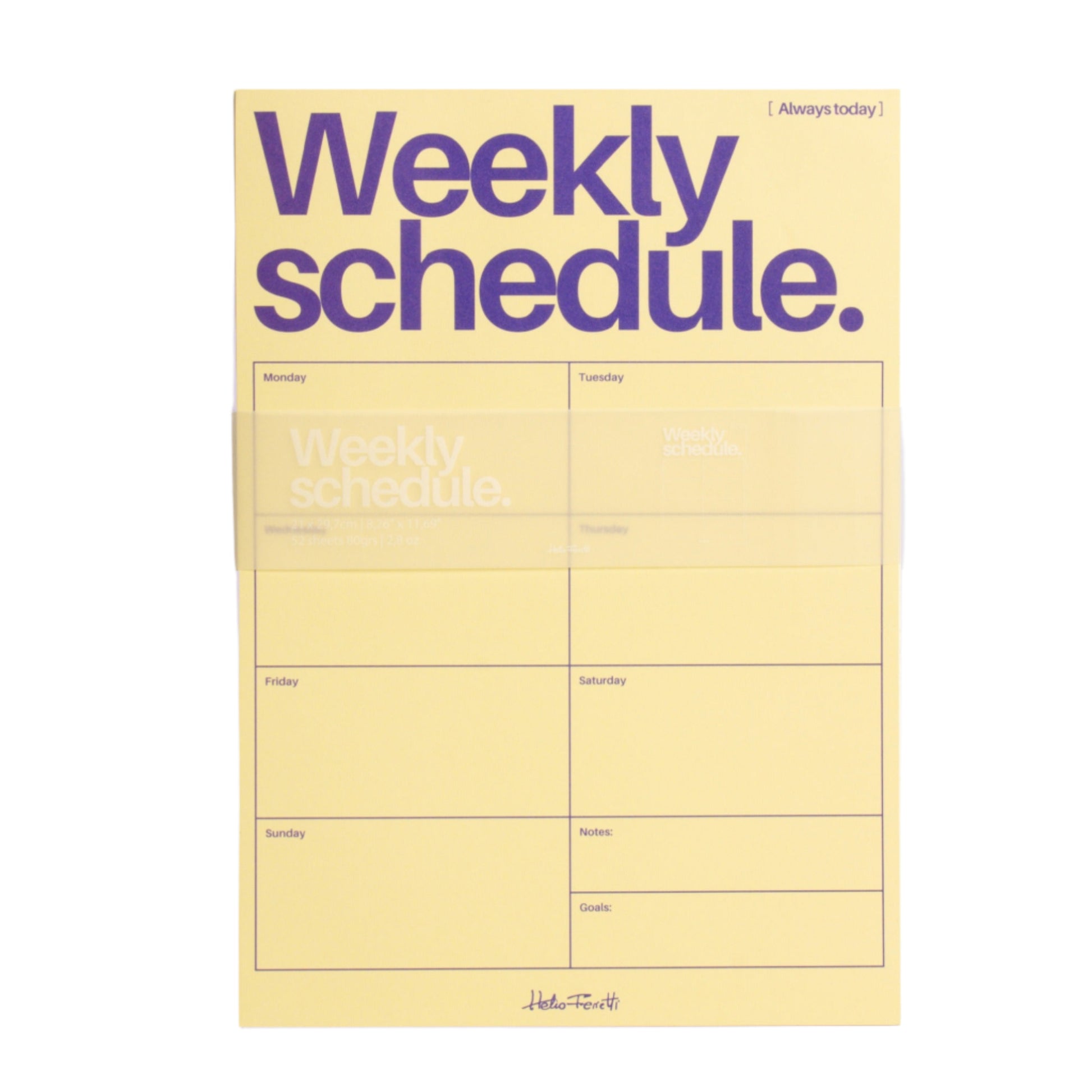 Το εβδομαδιαίο ημερολόγιο είναι ένα πρακτικό και κομψό εργαλείο για τον προγραμματισμό της εβδομάδας. Με διαστάσεις 21x29,7 εκ., διαθέτει 52 σελίδες από χαρτί 80gsm, ιδανικό για να διατηρείτε έναν καθαρό και οργανωμένο κατάλογο καθηκόντων. Περιλαμβάνει έναν μαγνήτη 14x8 εκ. και πάχους 1,5 χιλιοστών, τέλειο για να τον προσαρτήσετε στο ψυγείο και να έχετε τα εβδομαδιαία σχέδιά σας πάντα σε εμφανές σημείο.